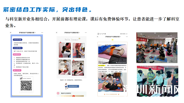 2020年受疫情影響,開展線上直播授課,建立孕婦答疑群、產(chǎn)后答疑群、疫情下心理咨詢?nèi)?,引入家庭?xùn)練微信打卡,督促產(chǎn)婦在家堅(jiān)持訓(xùn)練。2021年創(chuàng)新情景劇的形式,把患者日常生活中常見的案例變成小劇本演繹出來,把科普融入直播中。2022年創(chuàng)立“醫(yī)帶一路”,邀請(qǐng)醫(yī)院各個(gè)科室的主任和骨干進(jìn)行線上授課。