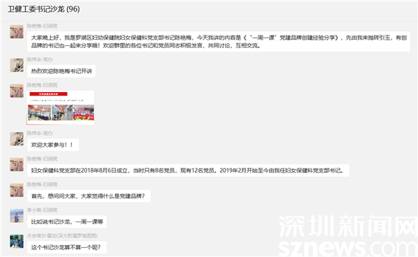 讀特客戶端·深圳新聞網(wǎng)2022年6月20日訊(記者 吳艷 通訊員 韓珊)為落實(shí)基層黨建“標(biāo)準(zhǔn)+質(zhì)量+示范”要求,推動(dòng)黨建業(yè)務(wù)工作深度融合,幫助基層黨組織找準(zhǔn)黨建品牌創(chuàng)建的切入點(diǎn)和實(shí)施路徑,6月16日,羅湖區(qū)委衛(wèi)生健康工委圍繞基層黨建的熱點(diǎn)難點(diǎn)問題,舉辦了一場(chǎng)以交流激發(fā)思考的“書記沙龍”,區(qū)婦保院婦女保健科書記陳艷梅線上分享黨建品牌創(chuàng)建經(jīng)驗(yàn)和服務(wù)群眾的心得體會(huì),68名支部書記熱烈探討,共同交流提高。