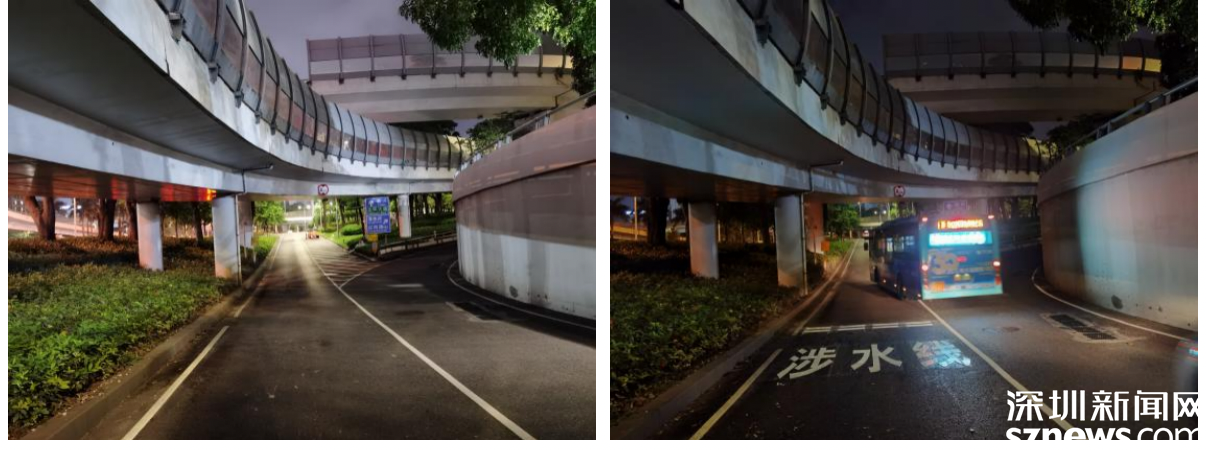 深南東路東行建設(shè)橋下涉水線施工前后對比