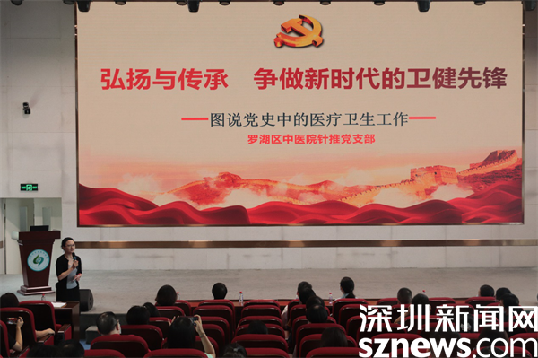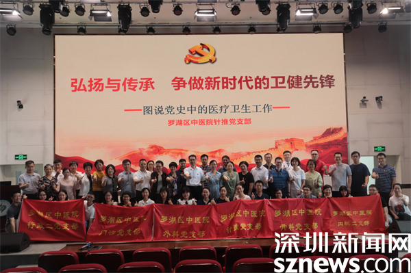羅湖中醫(yī)院黨委書記林漢群:“針推支部聯(lián)合全院6個支部,在今天這個重要的日子共同為大家展示了一堂精彩的黨課,生動描繪了建黨以來醫(yī)療衛(wèi)生事業(yè)發(fā)展的歷史畫卷,以及不同時期整個衛(wèi)生健康系統(tǒng)的變化,我們這一代人經(jīng)歷了SARS、新冠肺炎,在座每一位同志都自發(fā)地感動、自豪?,F(xiàn)在我們處在防控疫情和醫(yī)院發(fā)展的關(guān)鍵時期,全院黨員、群眾齊心協(xié)力,最大限度地發(fā)揮黨支部的戰(zhàn)斗堡壘和黨員的先鋒模范作用,全院上下一心,擰成一股繩,共同書寫羅湖中醫(yī)院發(fā)展的新篇章?!?/p>