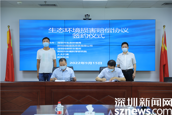 在深圳市環(huán)境科學(xué)研究院、深圳排放權(quán)交易所、人大代表、政協(xié)委員共同見(jiàn)證下,羅湖管理局局長(zhǎng)唐湘良與深圳某公司代表簽署生態(tài)環(huán)境損害賠償協(xié)議。協(xié)議約定,深圳某公司在簽約后,將生態(tài)環(huán)境損害賠償費(fèi)用存入在深圳排放權(quán)交易所開(kāi)設(shè)的賬戶,并完成資金凍結(jié)。該資金全額用于購(gòu)買(mǎi)碳普惠產(chǎn)品,支持全民減排、低碳出行。