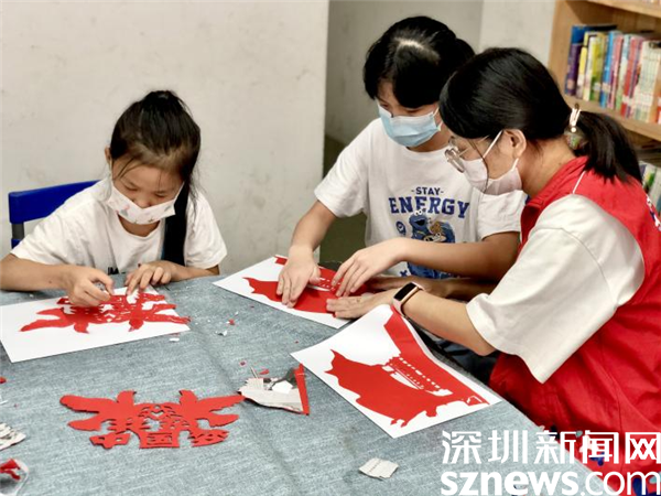 此外,在活動現(xiàn)場還安排了紅色主題手工剪紙活動,孩子們一手拿著剪刀,一手拿著紙認真專注地剪出和平鴿、天安門、五星紅旗等各式各樣的作品,現(xiàn)場氣氛熱烈濃厚。
