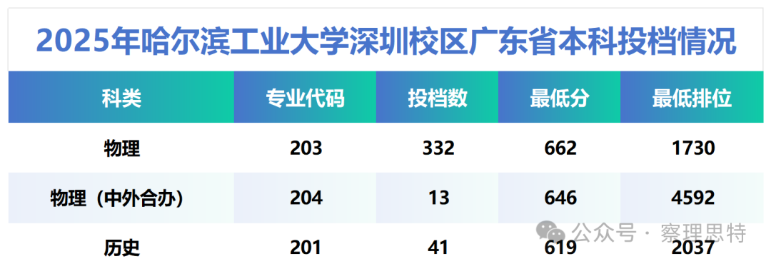 哈爾濱工業(yè)大學(xué)(深圳)在物理類投檔中表現(xiàn)尤為突出,以662分的投檔最低分和1730的全省最低排位位居深圳高校榜首,同時也是全省物理類投檔分?jǐn)?shù)最高的院校。歷史類投檔最低分619分,排位為2037,展現(xiàn)了其文理均衡的強(qiáng)勁實(shí)力。