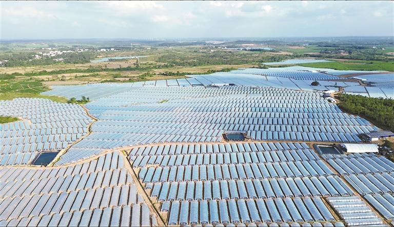海南儋州工業(yè)園王五片區(qū),成片的蔬菜大棚在烈日下熠熠生輝。