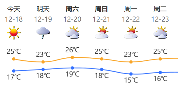 18日晴天間多云,空氣干燥,氣溫16-25℃;
