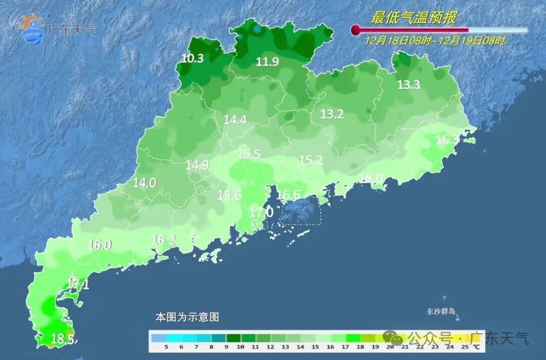 具體來(lái)看,18日,珠江口到粵東市縣晴到多云,其余市縣晴間多云。最低氣溫:粵北市縣7~11℃,南部沿海市縣15~18℃,其余市縣12~14℃。
