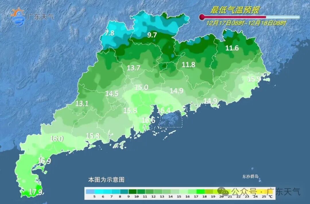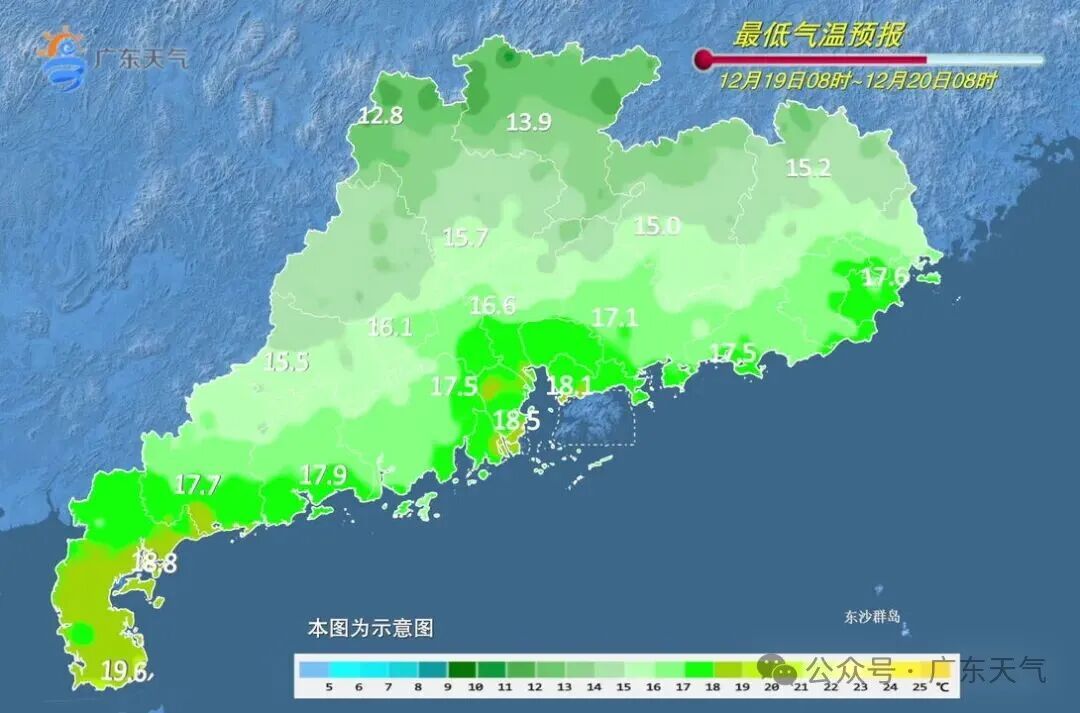 19日,粵東市縣陰天,有小雨,其余市縣多云,局部有零星小雨。最低氣溫:粵北市縣11~13℃,珠三角中南部和南部沿海市縣15~18℃,其余市縣13~15℃。