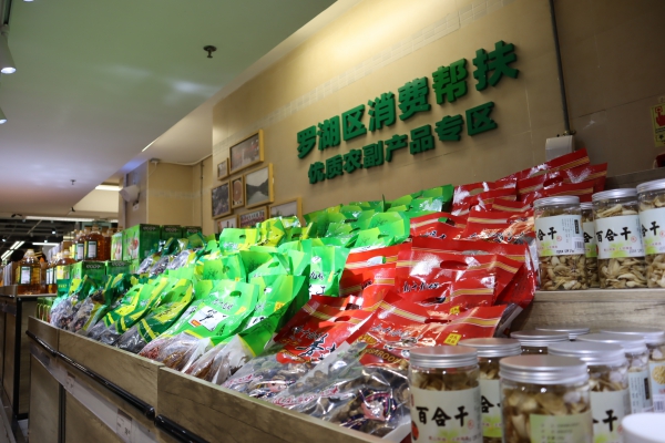 6月18日,羅湖區(qū)消費(fèi)幫扶專區(qū)華潤(rùn)萬(wàn)家蓮塘店在華潤(rùn)萬(wàn)家蓮塘店舉行揭牌儀式,并同步投入運(yùn)營(yíng)。來(lái)自廣西隆林、西林等多個(gè)羅湖對(duì)口扶貧地區(qū)的優(yōu)質(zhì)扶貧產(chǎn)品,正陸陸續(xù)續(xù)走進(jìn)深圳市民的購(gòu)物籃中。