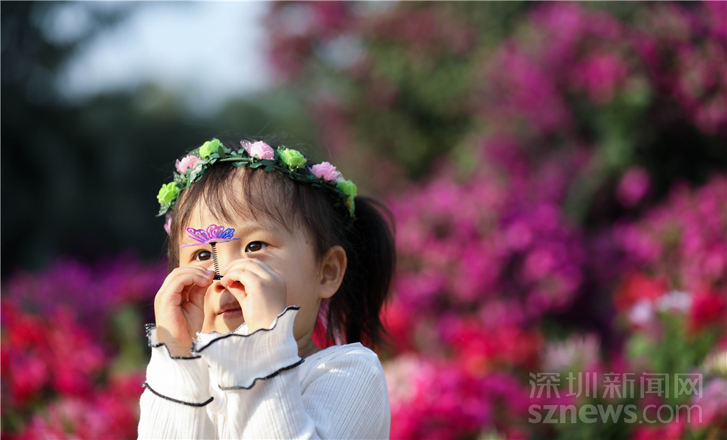 孩子在這花兒的海洋里,被冬日的陽光曬得心中都是暖暖的