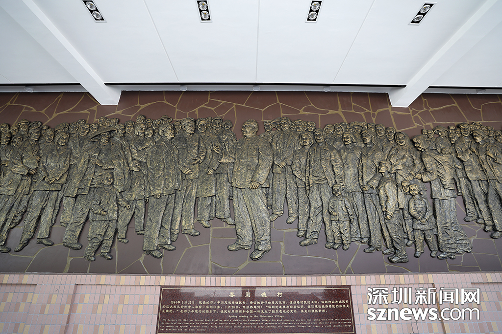文化長(zhǎng)廊中《春到漁村》的銅鑄浮雕再現(xiàn)了1984年鄧小平來漁民村考察的場(chǎng)景