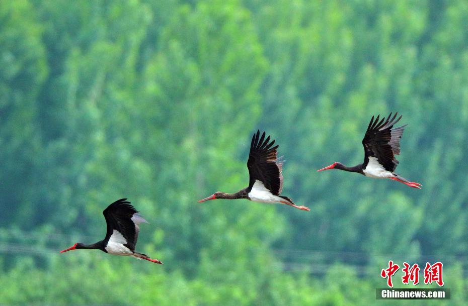 7月1日,河北石家莊平山崗南水庫(kù)下游滹沱河段發(fā)現(xiàn)成群黑鸛,最多時(shí)達(dá)12只,黑鸛是大型涉禽,屬?lài)?guó)家一級(jí)保護(hù)動(dòng)物,也是世界瀕危珍禽,已被《瀕危野生動(dòng)植物國(guó)際貿(mào)易公約》列為瀕危物種。中新社發(fā)于英杰 攝