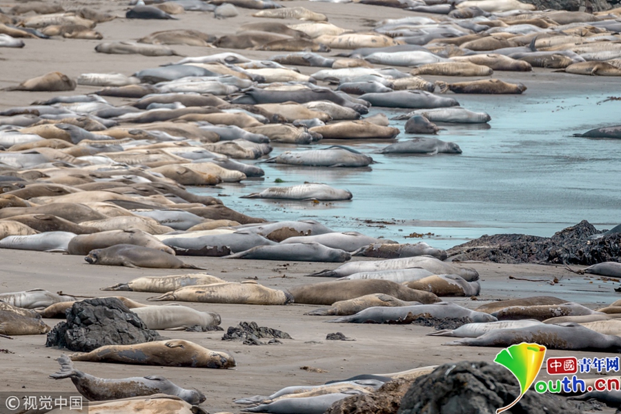 美國加州,阿根廷攝影師Lucio Moujan鏡頭下的圣西蒙海灘,整個海灘被陽光下午睡的象海豹占領。攝影師說道,“那里大概有數百只象海豹吧,我不知道具體數目,但是那有一大群。