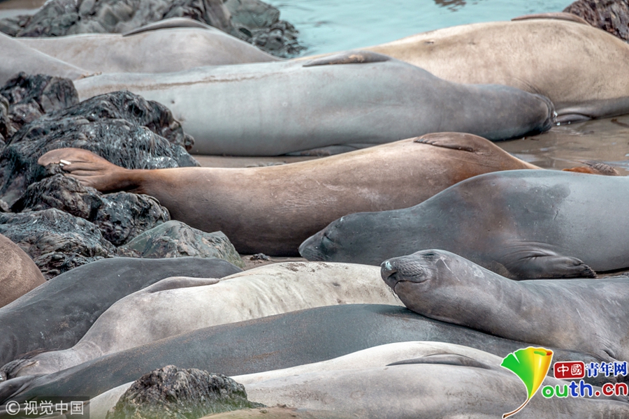 美國加州,阿根廷攝影師Lucio Moujan鏡頭下的圣西蒙海灘,整個海灘被陽光下午睡的象海豹占領。攝影師說道,“那里大概有數(shù)百只象海豹吧,我不知道具體數(shù)目,但是那有一大群。