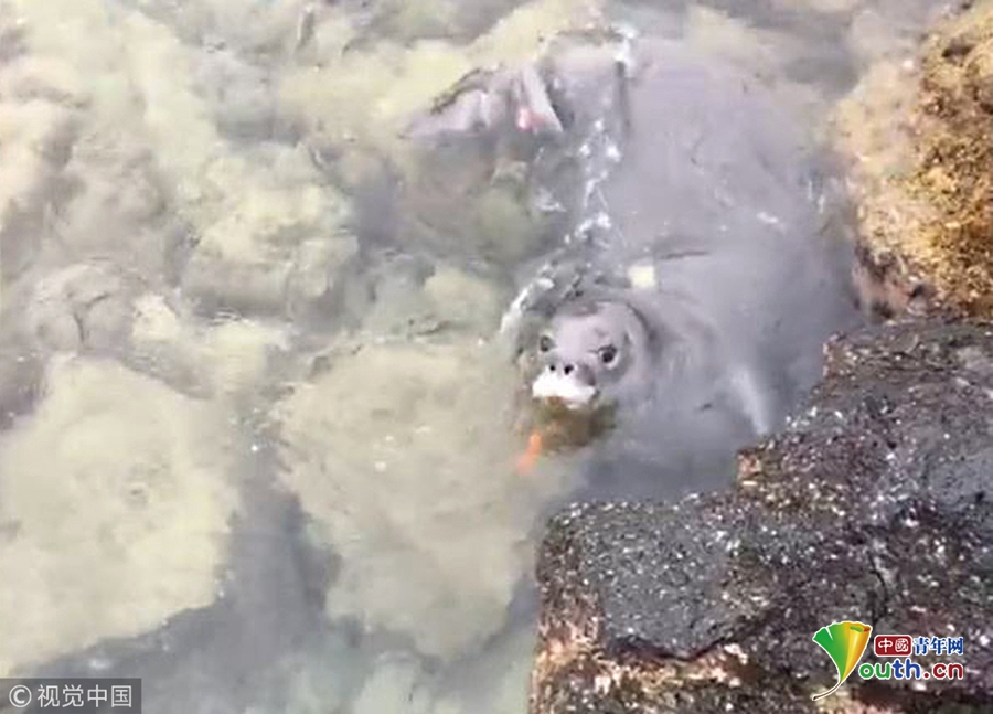 自然資源部的發(fā)言人稱(chēng)它在近岸的巖石下發(fā)現(xiàn)了這個(gè)橙色小刀。一位工作人員說(shuō)他很擔(dān)心小海豹會(huì)吞下刀,他還提醒我們要妥善處理垃圾,不要隨意丟棄在海灘上或者海里。