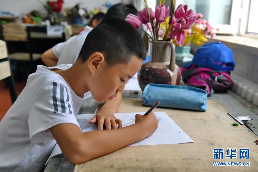 7月16日,在長春市少年宮,學(xué)生在進行繪畫練習。