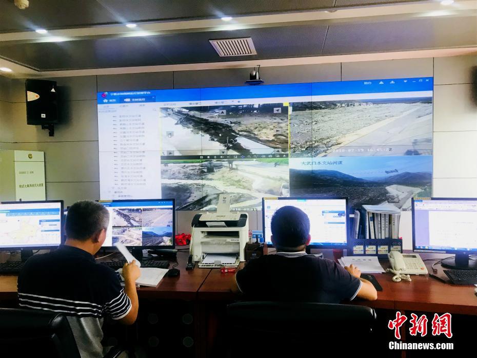 7月19日,寧夏水利廳防汛抗旱指揮調(diào)度系統(tǒng),工作人員監(jiān)控汛情變化。據(jù)了解,近日,甘肅、陜西等黃河流域普降大到暴雨,12日12時,黃河1號洪峰進入寧夏,入境流量達到每秒2100立方米,繼2012年以來,黃河寧夏段首次發(fā)布IV級預警。中新社記者額麗其格 攝