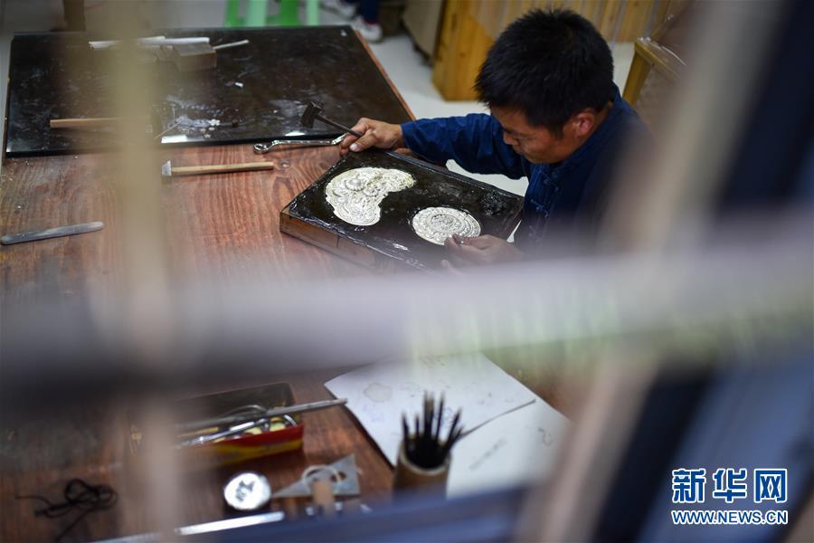 龍懂陽(yáng)的弟弟龍?zhí)?yáng)也是銀飾工藝傳人。和哥哥不同,弟弟主打的是銀飾文化體驗(yàn)游,用自家傳統(tǒng)苗寨開(kāi)設(shè)民宿,游客在此居住的同時(shí),還能學(xué)習(xí)體驗(yàn)銀飾品制作。每年暑期一到,家長(zhǎng)孩子絡(luò)繹不絕。新客源、新銷(xiāo)路、新模式帶動(dòng)雷山縣銀飾業(yè)不斷發(fā)展壯大,成為脫貧攻堅(jiān)的重要產(chǎn)業(yè)。2017年,雷山縣控拜、麻料、烏高三個(gè)村銀飾品及相關(guān)產(chǎn)業(yè)銷(xiāo)售額超過(guò)1.5億元,吸引很多外出打工的年輕人回家創(chuàng)業(yè)。苗寨鍛銀聲在綠水青山間響遍千戶,也漸漸走出大山,聲名遠(yuǎn)播。新華社記者 李芒茫 攝