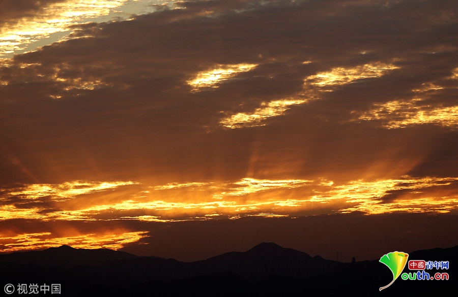 2018年9月5日,北京迎晴好天氣,傍晚時分,落日晚霞美不勝收。