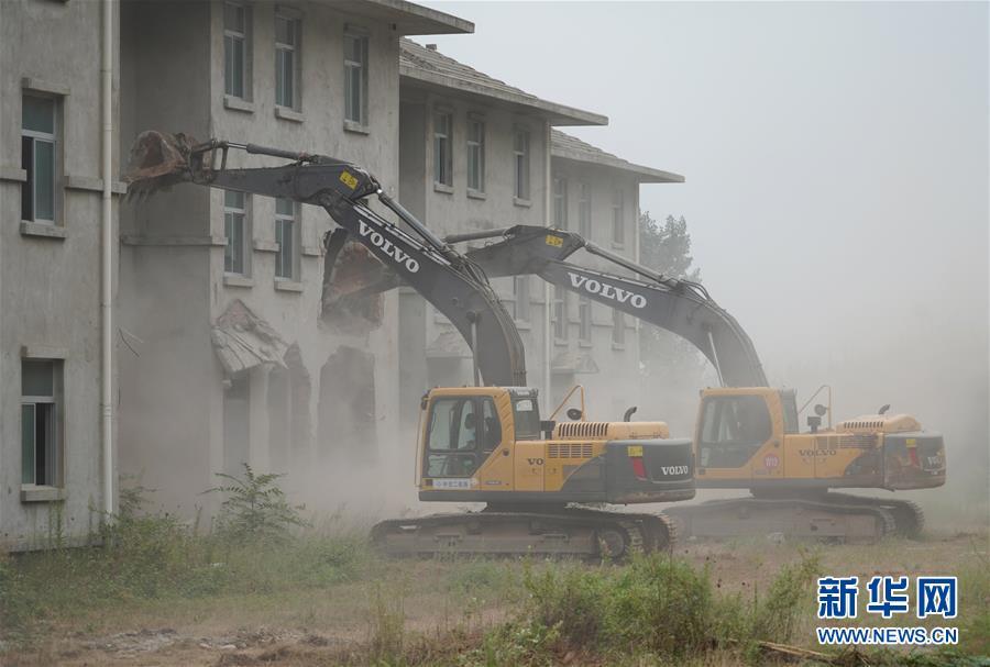 8月14日,大型機(jī)械對(duì)西安市鄠邑區(qū)蔣村鎮(zhèn)的違建別墅進(jìn)行拆除。新華社記者 邵瑞 攝