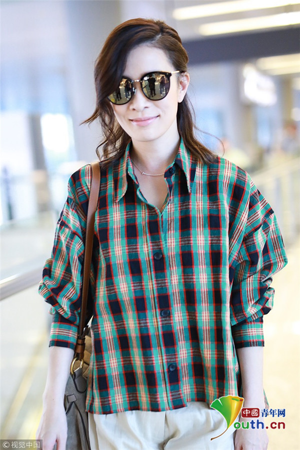 2018年9月9日,“嫻妃”佘詩曼從上海機場飛往北京機場,她擺“剪刀腿”大方任拍,身穿格紋襯搭配衫燈籠褲,時髦青春衣品超贊!