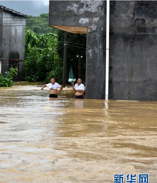 9月18日,陽(yáng)春市勝利街積水嚴(yán)重。 新華社記者 周科 攝