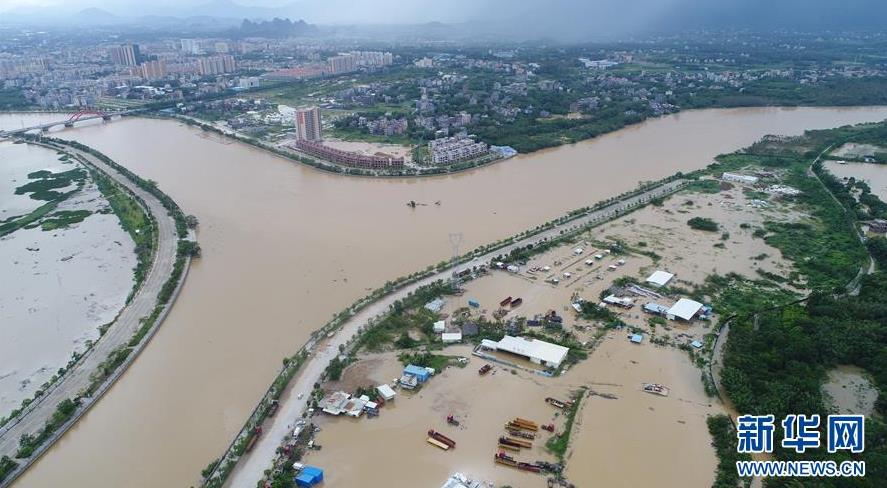 這是9月18日在廣東省陽江市陽春市拍攝的水浸情況(無人機(jī)拍攝)。 新華社記者張加揚(yáng)攝