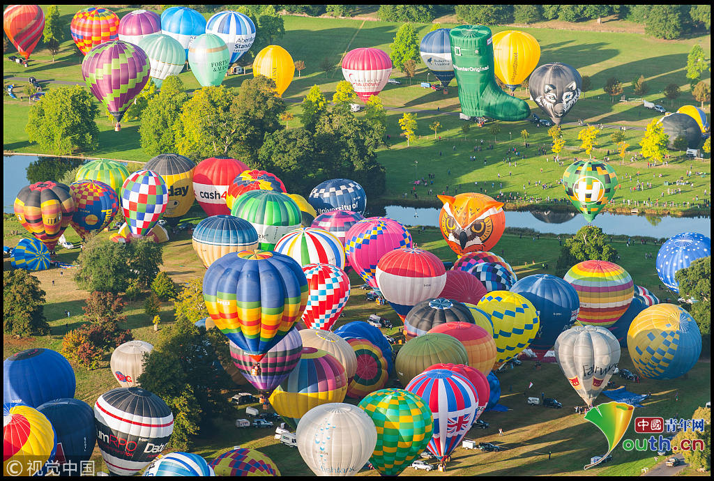 英國170多只熱氣球齊飛創(chuàng)紀(jì)錄 如田園夢(mèng)幻世界