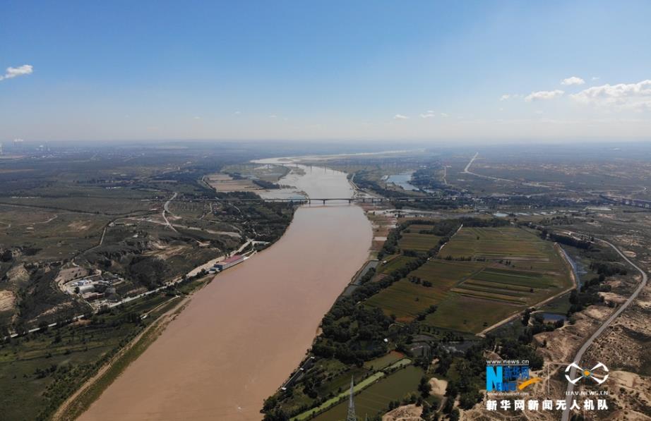 航拍黃河托克托段兩岸風光,東岸是魚米之鄉(xiāng)。新華網(wǎng) 張偉 攝