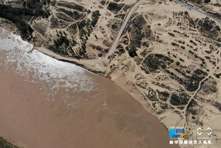 航拍黃河托克托段兩岸風光,西岸是浩瀚沙漠。新華網(wǎng) 張偉 攝