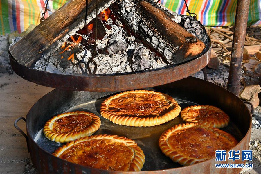 9月22日,段富善(右一)和村民一起展示新烤出的“柴火月餅”。 中秋節(jié)來臨之際,山西省晉城市澤州縣南嶺鄉(xiāng)段河村的段富善一家人忙碌起來,他們家制作的“柴火月餅”遠近聞名。 “柴火月餅”起源于明清時期,餡料以糖搭配花生仁、芝麻、玫瑰等,有近10道制作工序,其中最有特色的是木柴烤制工藝,烘烤師傅必須掌握好火候,才能烤出外皮酥脆、餡料飄香的月餅。 新華社記者 曹陽 攝