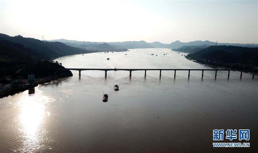 這是船舶從西江黃金水道潯江廣西梧州段通過(9月21日攝,無人機(jī)航拍)。 新華社記者 周華 攝