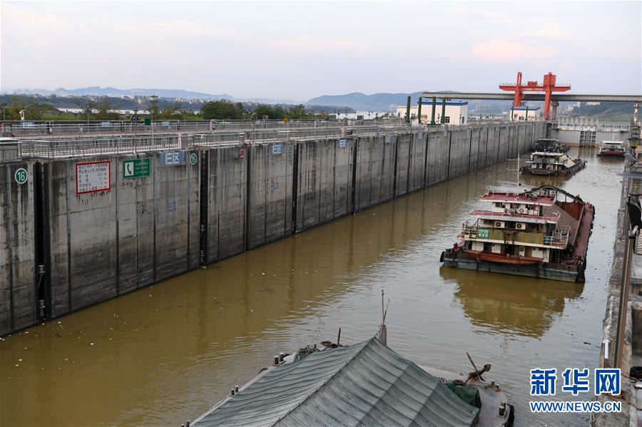 這是船舶準備從西江黃金水道廣西梧州長洲水利樞紐船閘通過(9月21日攝)。 新華社記者 周華 攝