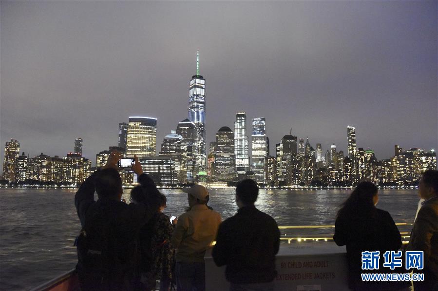 9月23日,在美國紐約,人們?cè)谟未p月活動(dòng)中拍攝曼哈頓美景。 23日晚,紐約華人社團(tuán)聯(lián)合總會(huì)等20多個(gè)僑團(tuán)聯(lián)合主辦哈得孫河游船賞月活動(dòng)。游船從哈得孫河到東河,途經(jīng)炮臺(tái)公園、自由女神像、華爾街金融區(qū)、聯(lián)合國大樓等著名景點(diǎn)。 新華社記者韓芳攝