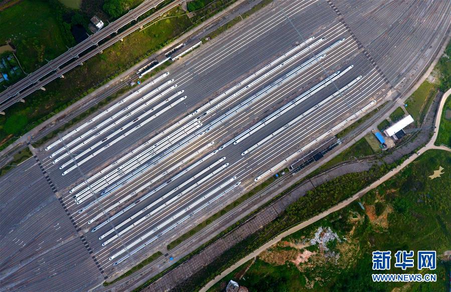 這是廣西南寧動車所內(nèi)準(zhǔn)備發(fā)往各地的動車組列車(6月18日無人機(jī)拍攝)。 廣西壯族自治區(qū)成立60年來,鐵路建設(shè)發(fā)生翻天覆地的變化。來自中國鐵路南寧局集團(tuán)有限公司的數(shù)據(jù)顯示,1958年廣西鐵路總里程為1346.3公里,如今廣西鐵路總里程達(dá)5191公里。廣西與周邊相鄰省份間實(shí)現(xiàn)動車“公交化”開行。此外,北部灣港—重慶班列、東盟海產(chǎn)品冷鏈班列、“百色一號”果蔬專列等的開通和運(yùn)營,強(qiáng)化了鐵路供給的針對性和有效性。鐵路成為助推廣西經(jīng)濟(jì)社會快速發(fā)展的“大動脈”。 新華社記者黃孝邦攝