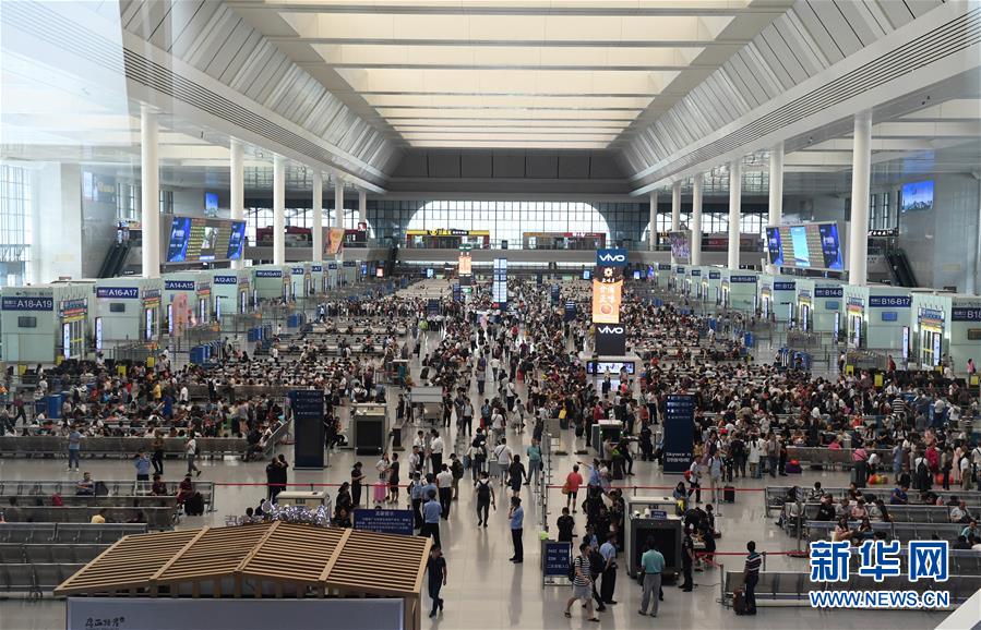 在廣西南寧東站,旅客在排隊(duì)候車,準(zhǔn)備出行(9月4日攝)。 廣西壯族自治區(qū)成立60年來,鐵路建設(shè)發(fā)生翻天覆地的變化。來自中國鐵路南寧局集團(tuán)有限公司的數(shù)據(jù)顯示,1958年廣西鐵路總里程為1346.3公里,如今廣西鐵路總里程達(dá)5191公里。廣西與周邊相鄰省份間實(shí)現(xiàn)動車“公交化”開行。此外,北部灣港—重慶班列、東盟海產(chǎn)品冷鏈班列、“百色一號”果蔬專列等的開通和運(yùn)營,強(qiáng)化了鐵路供給的針對性和有效性。鐵路成為助推廣西經(jīng)濟(jì)社會快速發(fā)展的“大動脈”。 新華社記者陸波岸攝