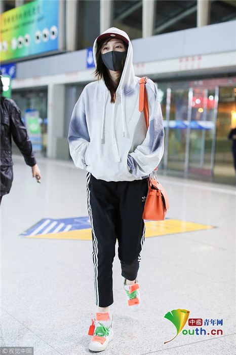 2018年9月26日,關(guān)曉彤現(xiàn)身機場,從北京飛往成都。她一身休閑出行低調(diào)十足,鞋子包包同色相呼應(yīng),造型神似鹿晗傻傻分不清楚!
