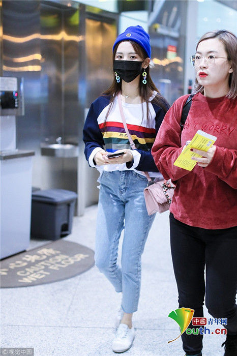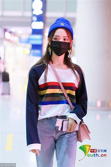 2018年9月25日,北京,“錦鯉少女”楊超越現(xiàn)身機(jī)場(chǎng),她身穿“彩虹裝”青春無(wú)敵,戴著糖果色耳環(huán),細(xì)節(jié)處可愛(ài)吸睛。