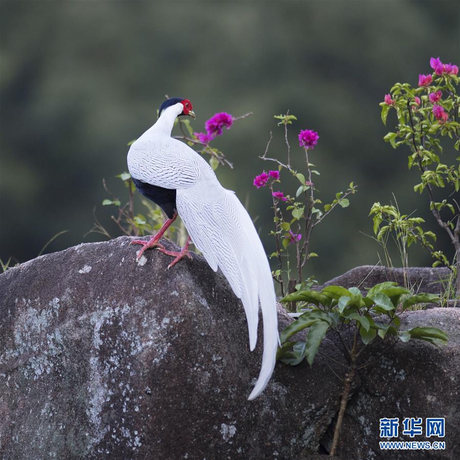 9月26日,在南靖縣鵝仙洞自然保護(hù)區(qū)內(nèi),一只白鷴在山石上停留。 新華社記者 梅永存 攝