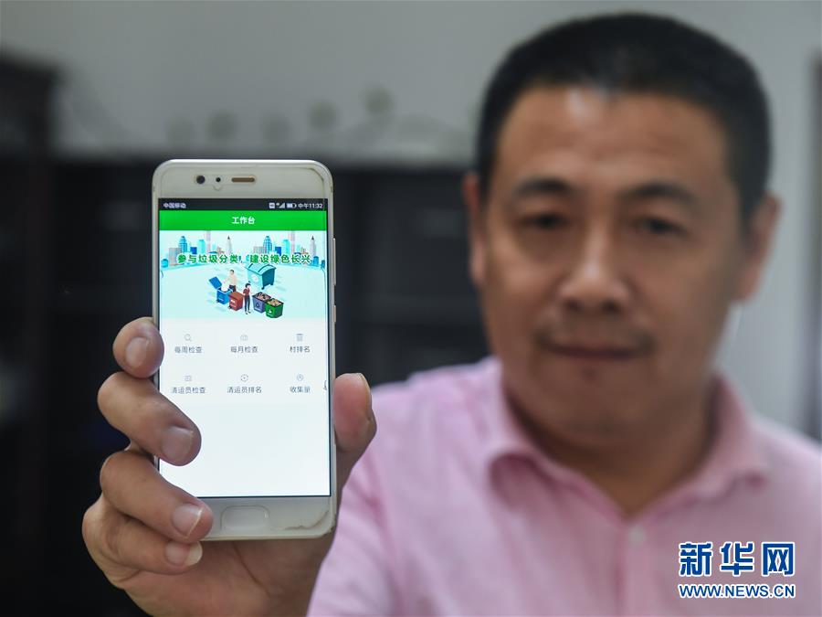 9月27日,工作人員展示垃圾分類APP的界面。從9月初開始,浙江省長興縣小浦鎮(zhèn)推廣使用手機垃圾分類智能管理平臺。通過這款A(yù)PP可以進(jìn)行村民垃圾分類情況打分、清運員每日簽到、監(jiān)督員巡查等,并能即時生成農(nóng)戶垃圾分類“成績單”,所有農(nóng)戶均可通過APP查詢垃圾分類排行榜,既方便又環(huán)保。新華社記者 徐昱 攝