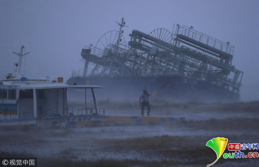 臺(tái)風(fēng)“潭美”強(qiáng)勢(shì)襲擊日本 游船歪倒在岸邊