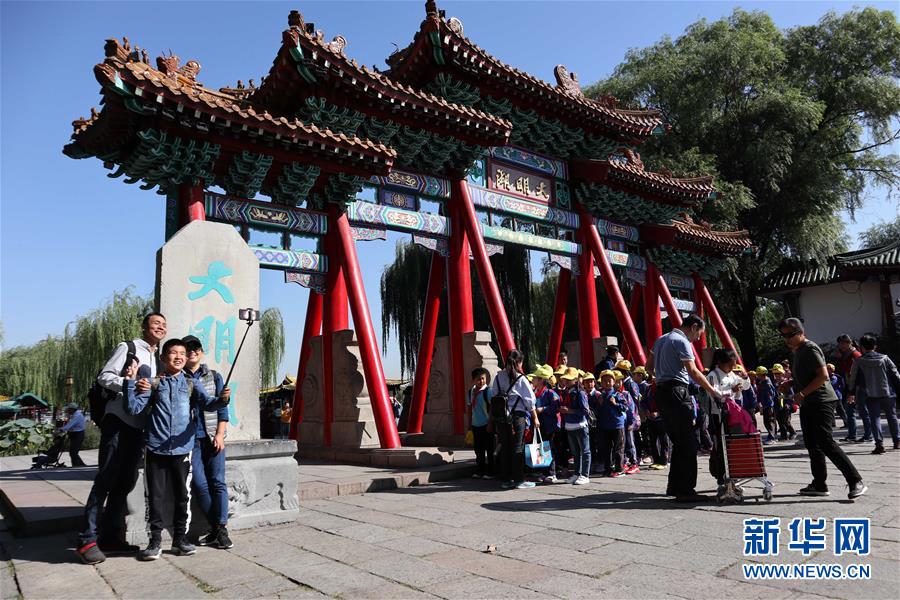 9月30日,游客在免費(fèi)開放的濟(jì)南市大明湖景區(qū)游覽。近年來(lái),山東積極推進(jìn)國(guó)有景區(qū)免費(fèi)開放工作,截至目前,山東實(shí)現(xiàn)免費(fèi)開放的國(guó)有景區(qū)已達(dá)286處。新華社記者徐速繪攝