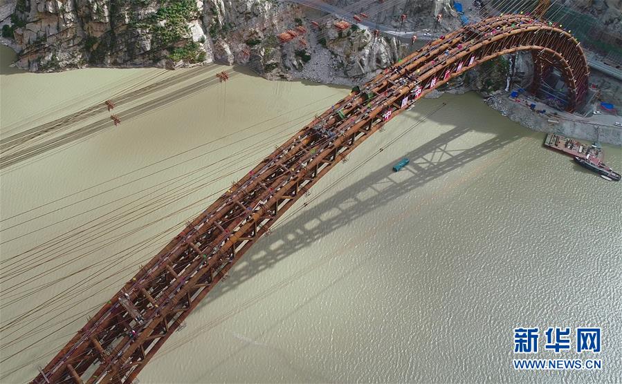 9月28日拍攝的川藏鐵路拉林段重點(diǎn)標(biāo)志性工程藏木特大橋。 當(dāng)日,隨著最后一節(jié)鋼管拱的對(duì)位和鎖定完畢,川藏鐵路拉林段藏木特大橋成功合龍,標(biāo)志著大橋主體結(jié)構(gòu)施工取得了關(guān)鍵性勝利。藏木特大橋由中國(guó)中鐵廣州局集團(tuán)承建,拱高112米,橋橫跨雅魯藏布江峽谷,水深66米。 新華社記者普布扎西攝