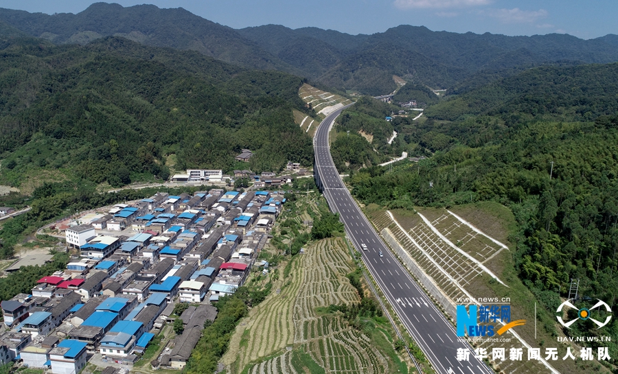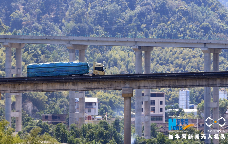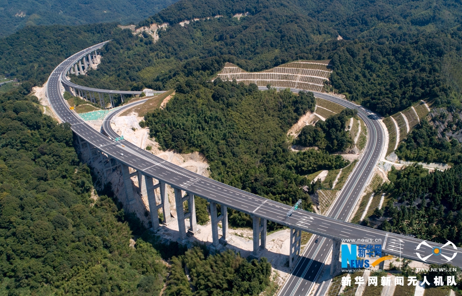 這是廈蓉高速長下坡龍巖路段的道路景觀(無人機(jī)拍攝)。新華網(wǎng) 肖和勇 攝