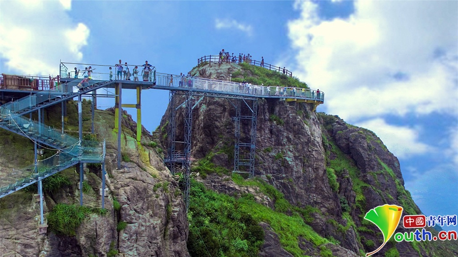 經(jīng)過一年的建設(shè),位于素有“嶺南第一險(xiǎn)峰”與“南粵小華山”之稱的廣東清遠(yuǎn)連山金子山,有一條玻璃天梯建成。下個(gè)月10日,玻璃天梯將正式對游客開放。