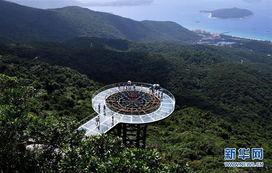 8月31日,游客在玻璃觀景平臺(tái)上參觀游覽。近日,位于海南省三亞市亞龍灣熱帶天堂森林公園的大佛石全海景玻璃棧道開始正式營業(yè)。凌空而建的玻璃棧道全長400米,游客可將亞龍灣的美景盡收眼底。新華社記者郭程攝