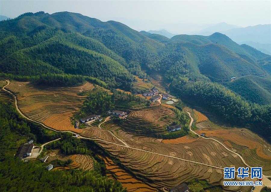 這是上堡鄉(xiāng)的高山梯田(10月9日無人機拍攝)。 新華社記者 胡晨歡 攝