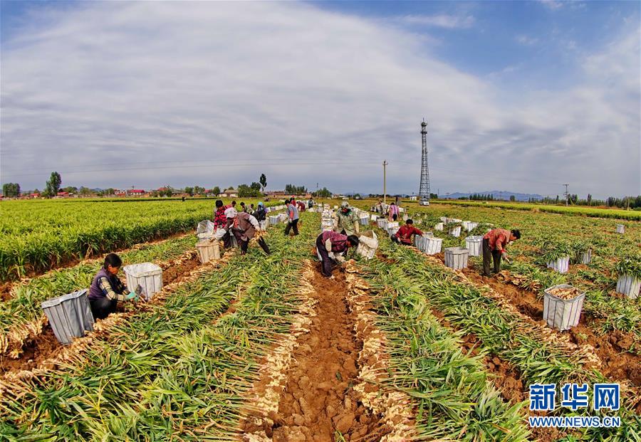 10月9日,秦皇島市撫寧區(qū)留守營鎮(zhèn)桑園村農(nóng)民在收獲生姜。 近年來,河北省秦皇島市撫寧區(qū)在農(nóng)業(yè)結(jié)構(gòu)調(diào)整過程中,引導(dǎo)當(dāng)?shù)剞r(nóng)民種植優(yōu)質(zhì)無公害生姜,并安排農(nóng)業(yè)技術(shù)員定期到田間指導(dǎo)農(nóng)民對生姜進(jìn)行標(biāo)準(zhǔn)化管理。據(jù)介紹,今年該縣生姜種植面積1萬多畝,預(yù)計產(chǎn)生姜5萬噸,種植戶每畝純收入達(dá)1萬多元。 新華社記者 楊世堯 攝