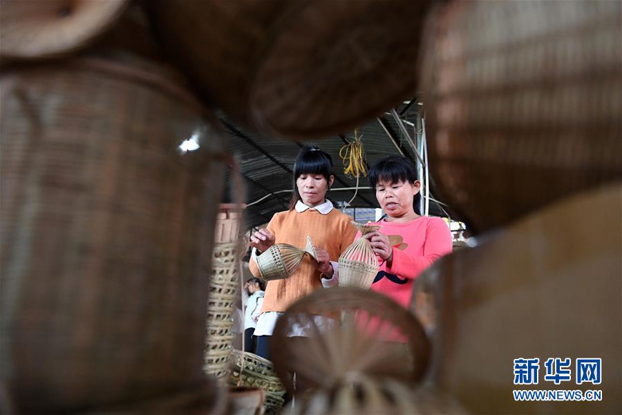 10月11日,在廣西靈山縣平南鎮(zhèn)硤木村一家竹編企業(yè),員工在加工竹編產(chǎn)品。新華社記者 陸波岸 攝