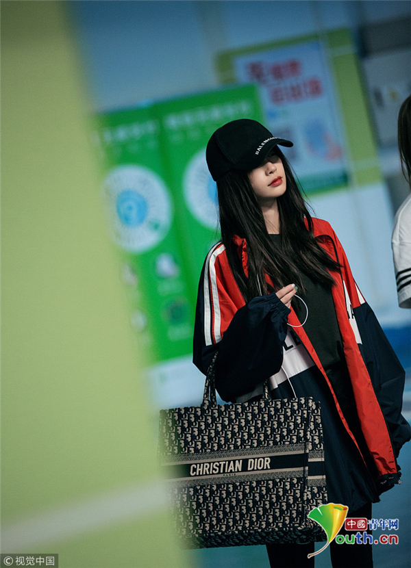 2018年10月11日,深圳,Angelababy現身深圳機場,頭戴鴨舌帽的她露出半張小臉紅唇嬌艷,一身休閑裝扮時尚靚麗,手中的大包與她纖瘦的身材形成鮮明對比,十分搶鏡,在上身的寬大運動衣襯托下,套著緊身褲的雙腿更顯細長。