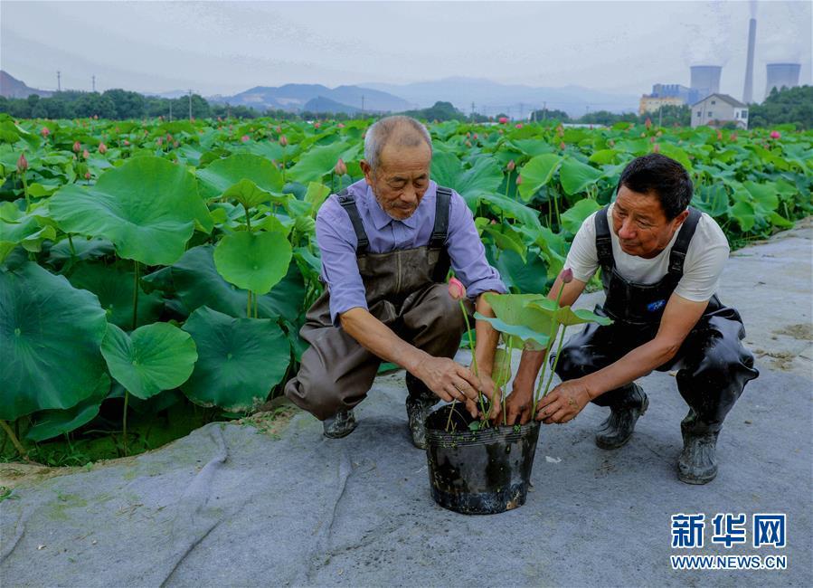 6月3日,荷農(nóng)們將觀賞性荷花裝盆準(zhǔn)備銷售。 進(jìn)入初夏時(shí)節(jié),浙江省湖州市長(zhǎng)興縣呂山鄉(xiāng)圣蓮苑荷花基地內(nèi)200多畝30多種各色荷花競(jìng)相開(kāi)放,該基地也迎來(lái)了荷花銷售和旅游觀光的旺季。據(jù)介紹,呂山鄉(xiāng)是浙江省長(zhǎng)興縣當(dāng)?shù)貍鹘y(tǒng)的蓮藕產(chǎn)區(qū),近年來(lái)開(kāi)始逐步升級(jí)打造“荷花之鄉(xiāng)”。不同于傳統(tǒng)的種荷收藕的思路,當(dāng)?shù)亟柚吧鷳B(tài)+創(chuàng)意”的理念種植、銷售觀賞盆栽荷花,一畝觀賞性荷花的產(chǎn)值可達(dá)到8萬(wàn)元,比普通種植蓮藕增收超過(guò)20倍,同時(shí)也推動(dòng)了鄉(xiāng)村旅游經(jīng)濟(jì),帶動(dòng)荷農(nóng)收入增長(zhǎng),助力鄉(xiāng)村振興。新華社記者徐昱 攝